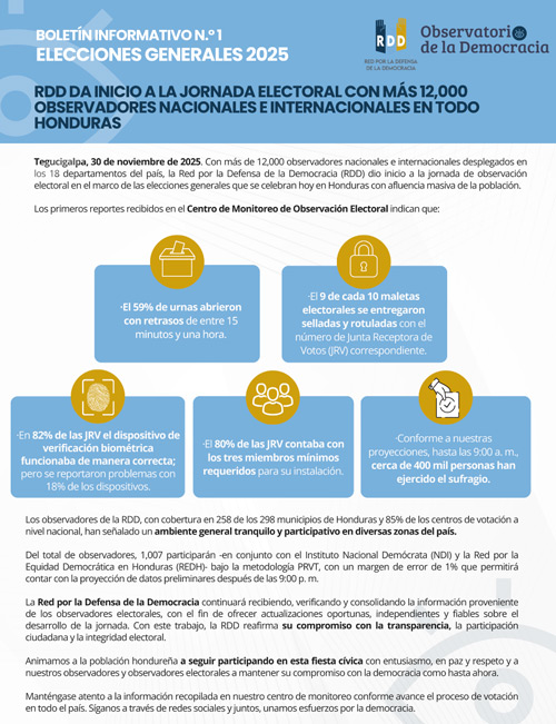 RDD DA INICIO A LA JORNADA ELECTORAL CON MÁS 12,000 OBSERVADORES NACIONALES E INTERNACIONALES EN TODO HONDURAS