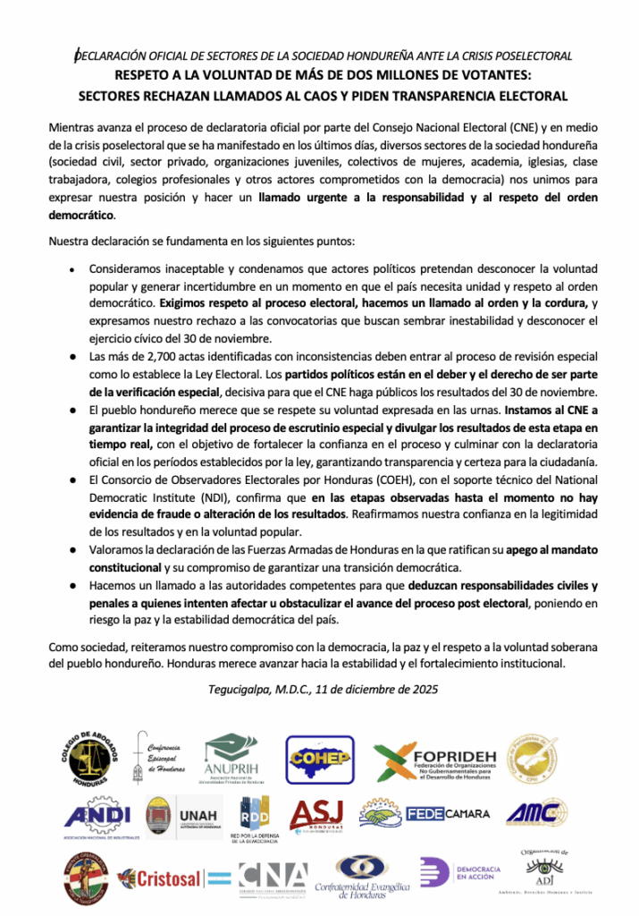 LA RED POR LA DEFENSA DE LA DEMOCRACIA EXPRESA SU PREOCUPACIÓN POR LAS